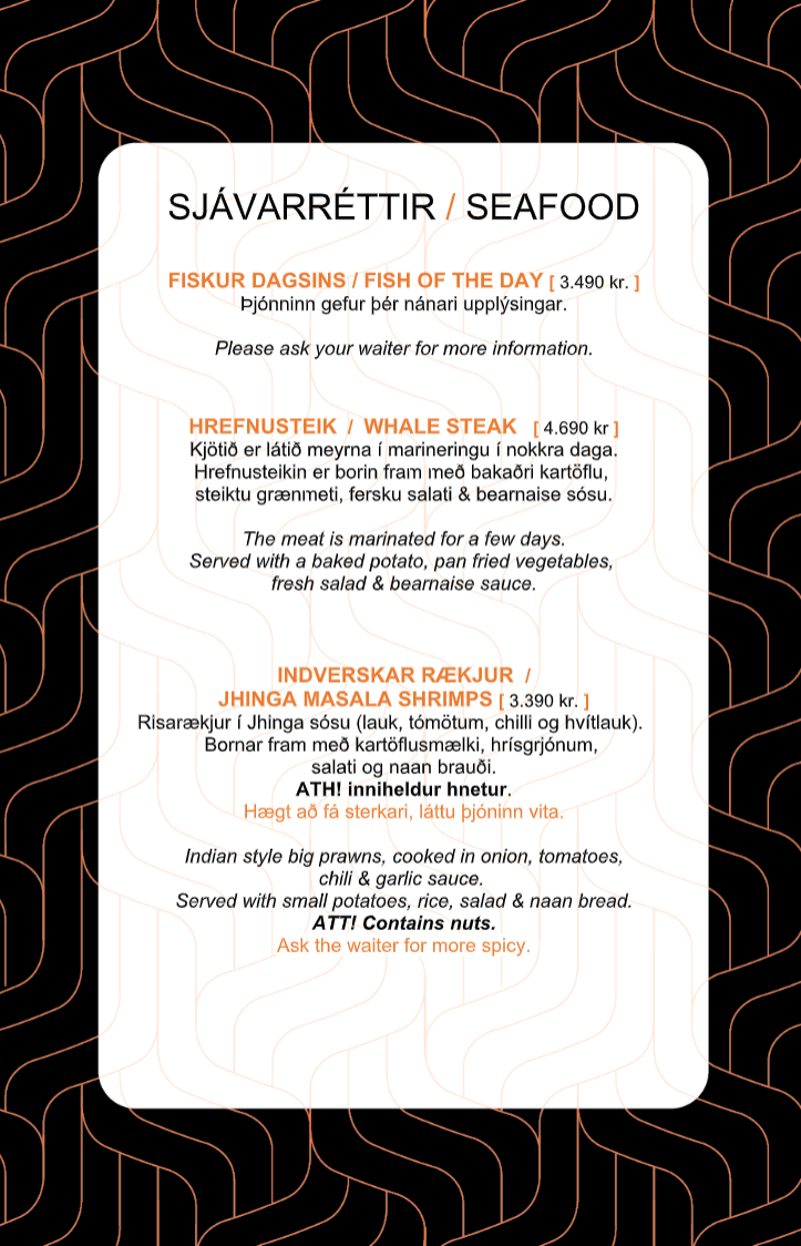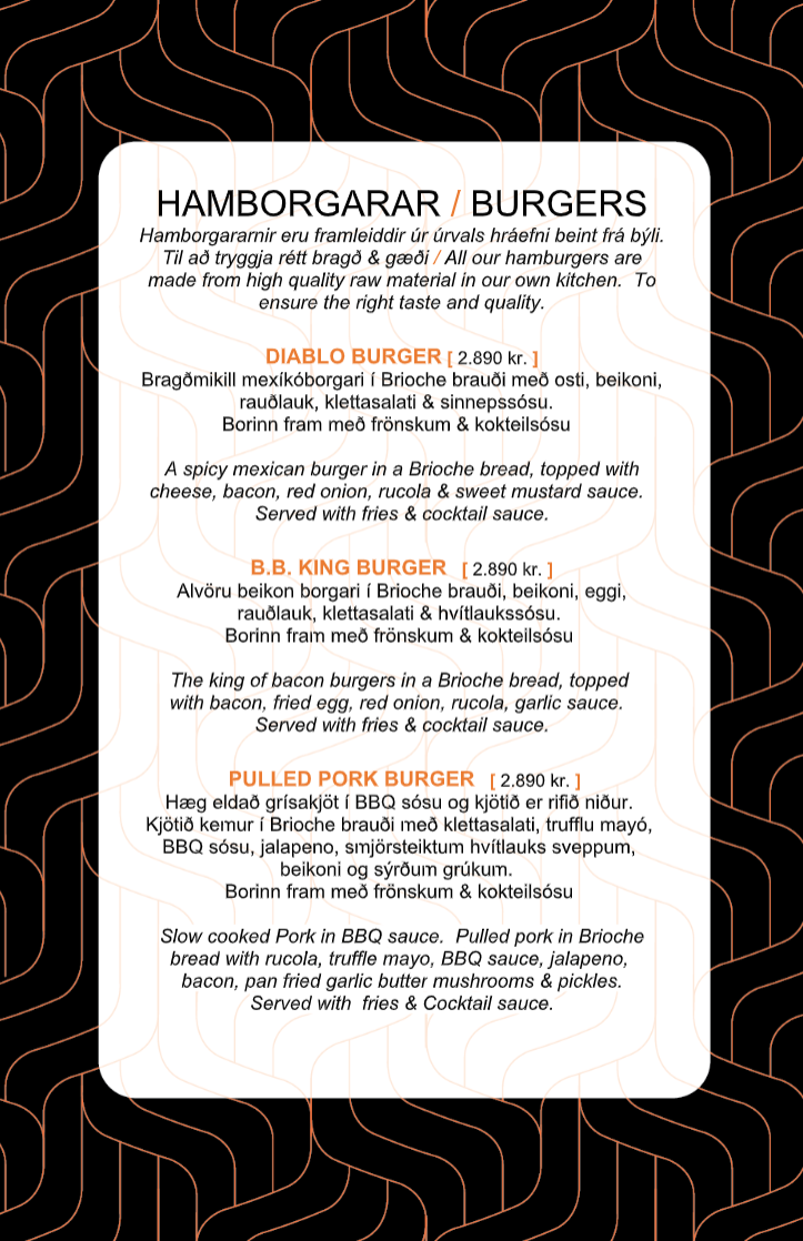 Below you will find our Menu